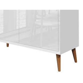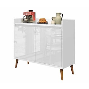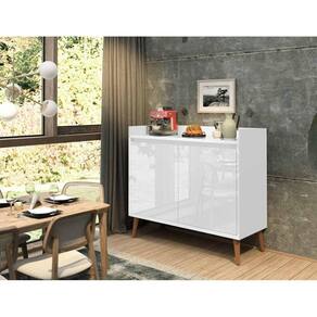 Observações: - Produzido em MDP; - 2 portas com dobradiças metálicas; - Pés palito, estilo retrô, em madeira pinus; - Peso suportado por prateleira: até 7kg; - Pintura Ultravioleta com acabamento brilho.