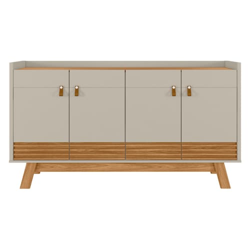 Esse Buffet contém um design moderono e atual, possui quatro portas de abrir com detalhes em ripado e