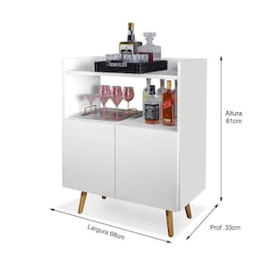 Possui 2 portas com amplo espaço interno, ideal para guardar utensílios, louças ou objetos diversos do dia a dia. O tampo superior é perfeito para apoiar bandejas, bebidas, vasos ou itens decorativos, tornando este aparador um aliado tanto em ocasiões especiais quanto no uso cotidiano.