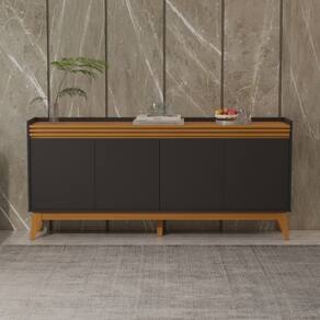 Buffet Aparador Ripado 4 Portas com Pés de MDF Astúrias 180cm - Preto