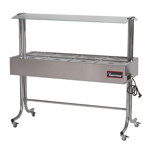 O Buffet Aquecido Gastromaq Cromado 8 Cubas Tampa Inox Cobertura Vidro 127V BTE 8ST G2 CR IV é um equipamento ideal para conservar alimentos aquecidos em buffets de restaurantes e outros estabelecimentos que possuem alimentos expostos aos clientes. Com8 cubas (1/2 GN), você pode oferecer uma grande variedade de pratos quentes, desde carnes, massas, sopas, até salgados e doces. As cubas, tampas, tanques interno e externo são feitos de aço inox 430, garantindo durabilidade e resistência. Aestrutura tubular curvada, com acabamentos em cromo, confere um design moderno e elegante ao buffet. Acobertura em vidro e a tampa da cuba em inoxpermitem uma melhor proteção dos alimentos. Atemperatura de aquecimento é controlada por termostato, de 30 a 110C, mantendo os alimentos na temperatura ideal para o consumo. O buffet possuirodízios com trava, possibilitando o fácil deslocamento e travamento quando necessário. Além disso, o buffet é de fácil instalação, manutenção e limpeza, facilitando o seu dia a dia.