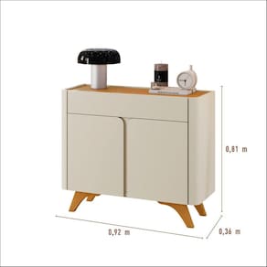 Descrição: O Buffet Arcus é ideal para sua sala de jantar ou estar. Com design moderno em curva ele irá agregar muito mais charme e requinte ao seu ambiente, possuindo dobraciças em slow motion e pés em madeira maciça. Especificações: - Medidas do produto montado: 81 (A) x 92 (L) x 36 (P) cm; - Cor: Off White/Naturalle; - Material: MDP; - Possui porta: 2; - Portas com dobradiças slow motion; - Pés de madeira maciça; - Necessita de montagem: Sim; - Grau de complexidade de montagem: Média: pode ser montado por mais de uma pessoa e/ou necessite de maior conhecimento para montagem; - Peso do produto: 33,5 kg. Informações importantes:- Nos não responsabiliza pela montagem e instalação dos produtos. A montagem deve ser realizada por um profissional, conforme as instruções do manual do produto. A responsabilidade da montagem é do consumidor.- Os Objetos que ambientam as imagens não acompanham o produto.- Pode haver alguma diferença de tonalidade entre a foto e o produto, devido ao tratamento de imagens e a calibração do seu monitor ou dispositivo.-A entrega é realizada por transportadora, não nos responsabilizamos, no ato da entrega por desmontagens, subir escadas/elevadores ou transporte por guincho para apartamentos. Eventuais despesas são de responsabilidade do consumidor-Antes de comprar o seu produto verifique as medidas e o local onde pretende instalar.