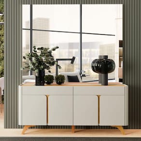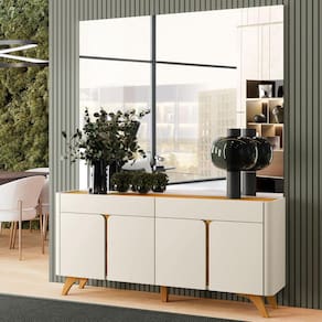 Descrição: O Buffet Arcus é ideal para sua sala de jantar ou estar. Com design moderno em curva ele irá agregar muito mais charme e requinte ao seu ambiente, possuindo dobraciças em slow motion e pés em madeira maciça. Especificações: - Medidas do produto montado: 81 (A) x 172(L) x 36 (P) cm; - Cor: Off White/Naturalle; - Material: MDP; - Possui porta: 2; - Portas com dobradiças slow motion; - Pés de madeira maciça; - Necessita de montagem: Sim; - Grau de complexidade de montagem: Média: pode ser montado por mais de uma pessoa e/ou necessite de maior conhecimento para montagem; - Peso do produto: 33,5 kg. Informações importantes:- Nos não responsabiliza pela montagem e instalação dos produtos. A montagem deve ser realizada por um profissional, conforme as instruções do manual do produto. A responsabilidade da montagem é do consumidor.- Os Objetos que ambientam as imagens não acompanham o produto.- Pode haver alguma diferença de tonalidade entre a foto e o produto, devido ao tratamento de imagens e a calibração do seu monitor ou dispositivo.-A entrega é realizada por transportadora, não nos responsabilizamos, no ato da entrega por desmontagens, subir escadas/elevadores ou transporte por guincho para apartamentos. Eventuais despesas são de responsabilidade do consumidor-Antes de comprar o seu produto verifique as medidas e o local onde pretende instalar.