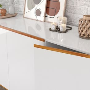 O Buffet Ares Lux Três Portas 1.25 – Tebarrot Móveis é a peça que faltava para complementar sua sala de jantar. Seu design clean com cava no lugar de puxadores e pés em madeira garante o requinte e delicadeza que você busca para agregar o seu ambiente. Seu amplo espaço interno com divisórias auxiliam na organização e praticidade do dia-a-dia. Possui 4 portas com dobradiças metálicas e acabamento semi brilho. Suporta até 20 quilos distribuídos uniformemente.
