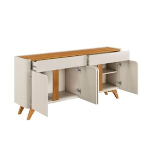 Buffet Aros 4 Portas Pés Madeira Maciça - Mavaular Off White/naturalle