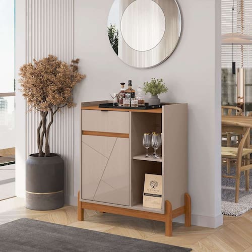 que tal o buffet bari? se você gosta de receber em casa ou de proporcionar bons momentos à família, pode contar com o buffet bari nessas ocasiões. além de ter ótimo tampo para apoiar itens de servir, como bandejas e taças, ou atuar como barzinho e receber as garrafas, o móvel tem 1 porta e nichos que ficam responsáveis por guardar tudo e deixar sempre pronto para o uso. já o design aposta na presença dos pés em madeira, que dão elegância e sofisticação ao ambiente. perfeito, não é? Marca: Modern