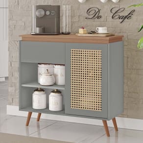 Apresentamos o Buffet Bourbon, fabricado 100% em MDF, apresenta um design sofisticado. Com aplique de poliestireno modelo tela indiana na porta. Seus pés em estilo retrô adicionam um charme vintage, enquanto a estrutura inclui 2 nichos, 1 gaveta e 1 porta para armazenamento versátil. Ideal para quem busca elegância e funcionalidade em um só móvel, além de produzir a agradável sensação do ter um charmoso Cantinho do Café. Ele é perfeito para transformar e organizar qualquer ambiente com estilo.