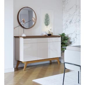 Buffet Classic 3 Portas Off White Com Freijó - Imcal Móveis O Buffet Classic 3 Portas - Imcal Móveis possui design requintado, que mistura sofisticação e modernidade, proporcionando um toque de charme e elegância ao seu ambiente. Produzido em MDP e MDF, oferece toda a qualidade que você merece, possui ainda funcionalidades distintas, podendo ser , por exemplo, como bancada, balcão e aparador e em ambientes como salas de estar e jantar. Uma belezura, não é mesmo? Aproveita e leva! =DDimensões do Produto Montado:Altura: 79 cmLargura: 125,2 cmProfundidade: 41,3 cmObservações:- Fabricado em MDF e MDP;- 3 portas com dobradiças metálicas;- Pés em madeira maciça;- Pintura Ultravioleta com acabamento brilho na cor off white;- Pintura Ultravioleta com acabamento fosco na cor freijó. Marca: Não Informado