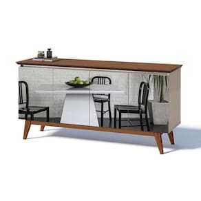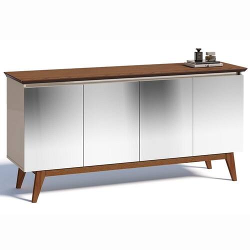 Este lindo Buffet e mais criacao da Imcal Moveis, com design moderno e sofisticado para agregar charme e beleza ao seu ambiente. Ele e produzido em MDF/MDP com pe em madeira macica, garantindo maior durabilidade do produto. E para embelezar ainda mais o seu produto ele conta com espelho nas quatro portas. Caracteristicas do produto: Estrutura em MDP de 15 mm; Tampo em MDF de 25 mm (45); 04 Portas com dobradicas metalicas; Pe em madeira macica; Acompanha espelho. Dimensoes do produto: Altura 790 mm / 79 cm; Largura 1652 mm / 165,2 cm; Profundidade 413 mm / 41,3 cm. A montagem e de responsabilidade do comprador. Apesar de simples e acompanhar manual de montagem, recomendamos que a mesma seja realizada por um profissional ou empresa especializada. Imagens meramente ilustrativas.