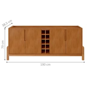 Feito em MDP/MDF. Possui 4 portas em MDF usinados, adega q comporta 10 garrafas e 2 prateleiras internas, seus compartilhamentos internos são ideais para armazenar e organizar diversos tipos de objetos.