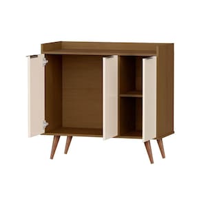 Contém uma prateleira interno e um amplo espaço para organizar elementos diários de diversos tamanhos, conta também com um tampo espaçoso que pode ser utilizado apra acomodar os objetos decorativos.
