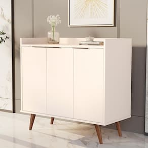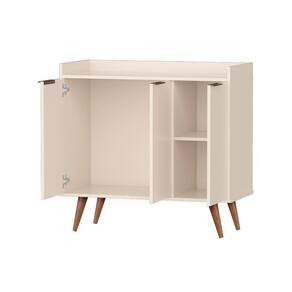 Contém uma prateleira interno e um amplo espaço para organizar elementos diários de diversos tamanhos, conta também com um tampo espaçoso que pode ser utilizado apra acomodar os objetos decorativos.