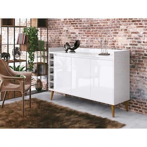 O Buffet com Adega Estilo - MóveisAqui possui um lindo design que garante a sofisticação e o requinte que seu ambiente precisa. Suas portas e adegas organizam com perfeição diversos tipos de utensílios de cozinha, além de garrafas e seu superior possui um amplo espaço para acomodar objetos de decoração e outos itens que precisam estar sempre a mão.