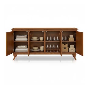 Fabricado em madeira de alta qualidade, o aparador garante durabilidade e estabilidade, proporcionando um toque acolhedor e natural à decoração. Seu design versátil combina facilmente com diferentes estilos de ambiente, tornando-se um complemento ideal para qualquer espaço.