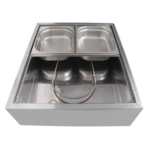 Cubas gastronômicas confeccionadas em aço inox 304, padrão 1/2 x 100 nas medidas 10 x 26,5 x 32,5 cm (a x l x p);