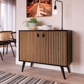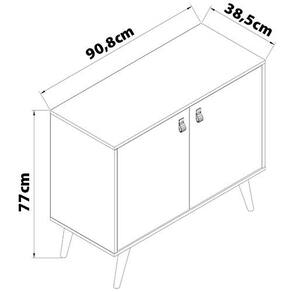 Feito em MDP e MDF de ótima resistência, esse item inclui em sua estrutura portas de bater com puxadores em couro, amplo espaço interno, prateleira resistentes pés fixos feitos em madeira maciça e acabamento em pintura UV. E mais, ele é capaz de suportar até 20kg muito bem distribuídos.