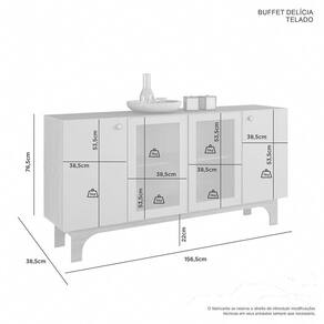 O Buffet Delícia é uma excelente opção para quem busca funcionalidade, praticidade e sofisticação, ele garante tudo isso em um só produto. Com seu design clean e minimalista, vai ser super fácil de combinar com o ambiente que você desejar colocar; além disso seu amplo espaço interno lhe garante uma ótima capacidade de armazenamento. Vem garantir o seu!