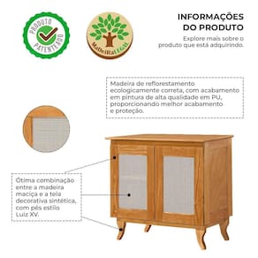 Fabricado em madeira maciça de reflorestamento, ecologicamente correta, o aparador traz também uma tela decorativa sintética que adiciona textura e leveza ao visual. Os pés no estilo Luiz XV reforçam o charme clássico, enquanto o acabamento em pintura PU de alta qualidade garante proteção, durabilidade e um acabamento refinado. Uma escolha inteligente para quem não abre mão de beleza, resistência e responsabilidade ambiental.