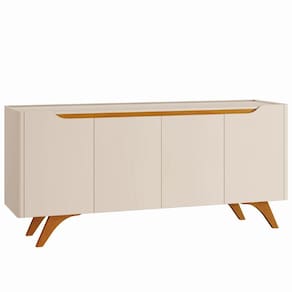 O Buffet Grecia conta com design clean e sofisticado com cantos arredondados em MDF, quatro portas com dobradiças de 35mm slow motion e batente de silicone com fechamento silencioso, para melhor durabilidade do seu móvel, Possui também uma prateleira interna e pés de madeira maciça. As cores disponíveis são off white e off white com naturalle.