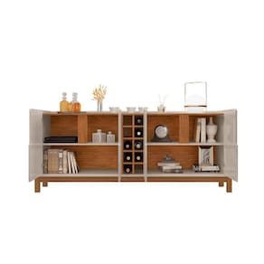 Ideal para organizar melhor sua sala de jantar ou de estar, o Buffet Lizz! . Possui 4 portas e duas prateleiras internas, seus compartimentos internos são ideais para armazenar e organizar diversos tipos de objetos pessoais, além de seu aparelho de jantar e demais itens que sejam necessários. Lindo, robusto e versátil, garante um espaço moderno e organizado. Base e laterais de MDF com cantos arredondados. Estrutura dos pés de madeira maciça. E ainda possui 10 adegas para armazenar suas bebidas com mais facilidade.