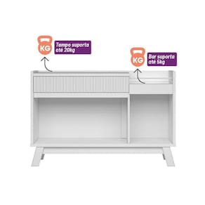 Com muito charme voce pode exibir na parte superior suas decoracoes preferidas. Alem de tudo, o Buffet Lucca dispoe de duas portas de abrir e uma gaveta corredica telescopica com detalhe ripado para que voce possa guardar com estilo aqueles objetos uteis do dia-a-dia. Em um produto tao moderno nao podia faltar um local para colocar quadros ou drinques, nao e? Por isso Buffet Lucca possui um bar espelhado com hastes metalicas, que vao manter sua sala ainda mais sofisticada.