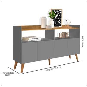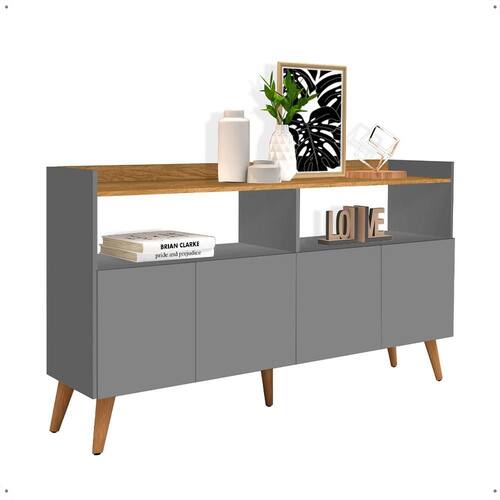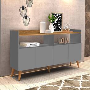 Buffet Master 4 Portas Pés Palito Madeira Nicho Organizador Aparador Grande Sala Jantar Cinza/Nature - Lojas RPM