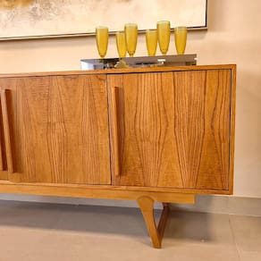 Com este lindo Buffet Amsterdam você proporcionará momentos mais agradáveis e descontraídos, design moderno, perfeito para sua casa. O Buffet Amsterdam tem a estrutura em MDF laminado com folhas de madeira maciça, e os pés em madeira maciça. Não perca tempo garanta já o seu!!!