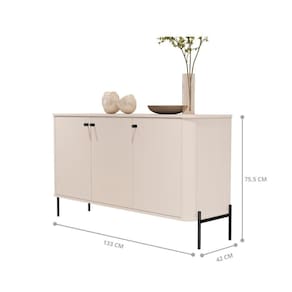 ALTURA DO PRODUTO (CM): 75,5 | ALTURA DO PRODUTO COM EMBALAGEM (CM): 44 | COMNTO DO PRODUTO (CM): 42 | COMNTO PRODUTO COM EMBALAGEM (CM): 120 | CONTEÚDO DA EMBALAGEM: 1 Buffet | CORES DO PRODUTO (FILTRO DE CORES): Off White/Preto | COR PREDOMINANTE: Off White | DESCRIÇÃO DO TAMANHO: 75,5x133x42 | ESTADO DE ORIGEM: SP | INSTRUÇÕES/CUIDADOS: Limpar com flanela ou pano macio seco, não utilizar produtos abrasivos, desengordurantes, álcool ou solvente. Não expor o produto diretamente à luz solar e à umidade | LARGURA DO PRODUTO (CM): 133 | LARGURA PRODUTO COM EMBALAGEM (CM): 133 | MARCA: Casa H | MATERIAL PARA FILTRO: MDF | MATERIAL PRINCIPAL: MDF | PESO DO PRODUTO (KG): 30,7 | PESO PRODUTO COM EMBALAGEM (KG): 31,2 | PRODUTO: Buffet | PRODUTO PRECISA DE MONTAGEM?: Sim, a montagem é facil mas sugerimos a contratação de um montador para a montagem do produto. Não nos responsabilizamos por danos cas no ato da montagem. | QUANTIDADE DE GAVETAS: Não possui | QUANTIDADE DE PORTAS: 3 | QUANTIDADES DE CAIXAS DE EMBALAGEM: 1