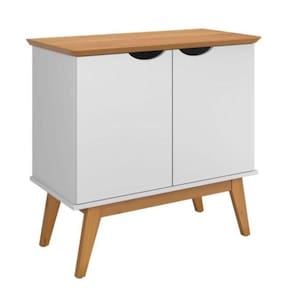 Tampo chanfrado em MDF de 25 mm Cantos arredondados Pés em madeira maciça Puxadores Cava Prateleiras organizadoras espaçosas