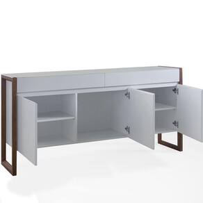 Produto: Buffet Modelo: Quadro Referência: BQUA Estrutura: MDF e Madeira Maciça Acabamento: Laca e Verniz Tampo superior: Vidro laqueado 4mm aplicado sobre o MDF Medidas Altura: 80 cm Largura: 130 / 160 / 180 / 200 cm Profundidade: 40 cm Montagem: Produto montado Peso: 35 kg