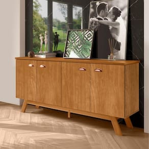 Pintura Semi Brilho, possui 4 portas com puxadores de plastico 64mm, tampo de 18mm em MDF.