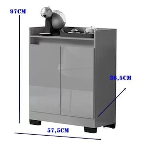 Modelo: Aparador REAL 2 Portas; Dimensões: 57,5 cm(L) x 97 cm(A) x 36,5 cm(P); Material da estrutura: MDP com pés de Plástico; Marmorizado feito em pintura. Quantidade de portas: 02 (dobradiças metálicas); Quantidade prateleiras: 01, interno; Peso suportado: até 30 kg distribuídos; Requer montagem: Sim (kit montagem incluso); Embalagem do envio: Papelão e plástico;
