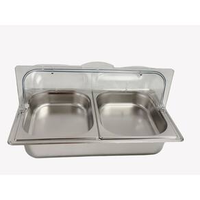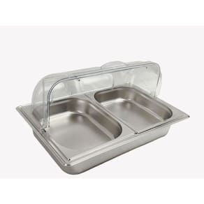Conteúdo da Caixa 2 Cubas GN de 1/2x65 mm para os alimentos para até 4,5 litros ( Padrão GN) 1 Cuba para a água com até 9,5 L 1 Tampa Basculante de Acrílico