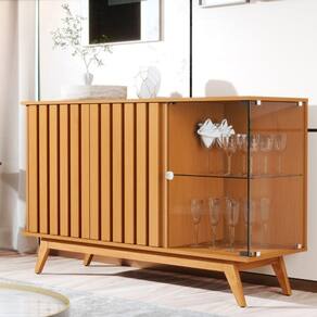 Esse Buffet é perfeito pois possui detalhes ripados e lateral de vidro garantindo a elegância do seu ambiente.