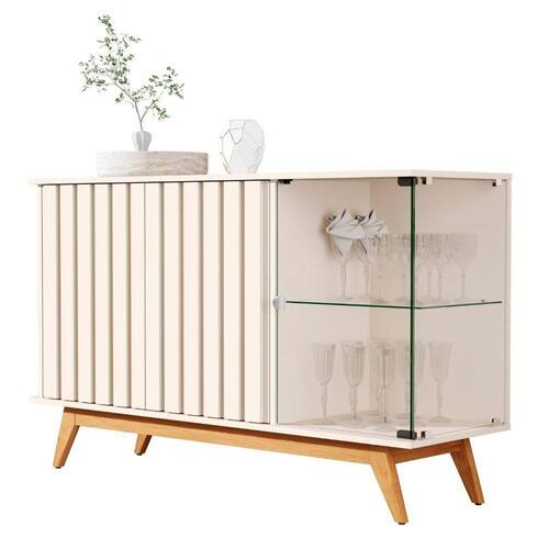 Esse Buffet é perfeito pois possui detalhes ripados e lateral de vidro garantindo a elegância do seu ambiente.