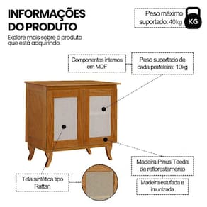 AS IMAGENS SÃO MERAMENTE ILUSTRATIVAS E PODEM SOFRER VARIAÇÕES DE COR E PEQUENOS DETALHES DE ACORDO COM O SEU MONITOR, ILUMINAÇÃO DO AMBIENTE E ATÉ MESMO A SUA PERCEPÇÃO VISUAL.Buffet SalÃo de Beleza em Madeira MaciÃa Deltan 2 Portas em Telinha - Castanho