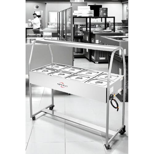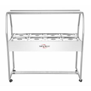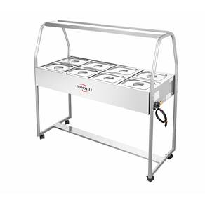 A função do Buffet térmico SPOLU é manter os alimentos servidos em suas cubas quentes enquanto em exposição. Possui cubas fabricadas em aço inox 201, tanque, tampas e moldura externa em aço inox 430 e estrutura de sustentação tubular. Sua resistência blindada é confeccionada em aço inox e controlada por um termostato com escala de 30ºC a 120ºC. Possui uma lâmpada piloto em seu painel indicando a função liga/desliga do termostato. Para facilitar a movimentação e o deslocamento a estrutura tubular é dotada de rodízios giratórios. Produtos SPOLU - CONCEITO DE QUALIDADE.