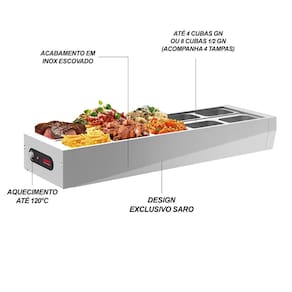 Mantenha seus alimentos sempre quentinhos e prontos para servir com o Buffet Térmico de Mesa Saro! Qualidade, durabilidade e praticidade em um único produto!
