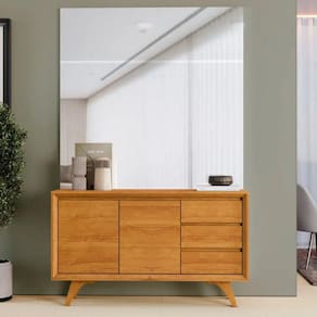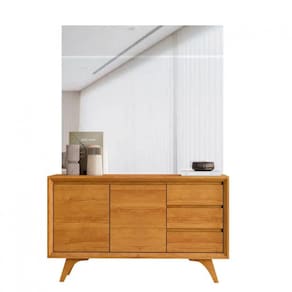 Características: Marca: Mavaular Modelo: Buffet Piazza Pés: Madeira Maciça Possui Portas: 2 portas Possui gaveta: 3 gavetas Prateleiras internas: 2 prateleiras Dobradiças em Slow motion Puxadores de cava unha Necessita de montagem: Sim Complexidade de montagem: Média Sistema de montagem: Parafusos e cavilhas e girofix Montagem e montador: Não inclusos Recomendação de montagem: Seguir a orientação conforme o manual qua vai junto ao produto Quantidade de volumes: 02 Situação do produto enviado: Novo e desmontado na caixa Recomendações de uso, manutenção e limpeza: Pano levemente umedecido com sabão neutro Obs.: Espelho Não Incluído