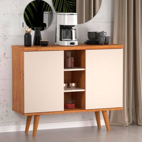 Buffet Viero Ulisses com 2 portas e 4 prateleira - 101cm de largura - Mel e Off White