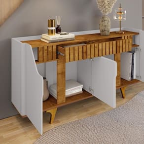 Quer um ambiente sofisticado e organizado? Com nosso aparador, você pode transformar sua casa em um espaço ainda mais elegante. Com design atemporal e acabamento impecável ele é perfeito para tornar seu ambiente mais organizado e acolhedor.