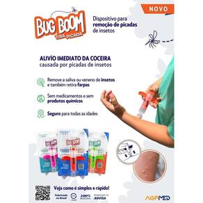 O inovador Bug Boom Tira Picada atua promovendo o alívio imediato da coceira e do desconforto causado por picadas de insetos. Sem medicamentos e sem produtos químicos. Seguro para todas as idades Como Usar - Passo 1: Posicione o dispositivo sobre a picada de inseto - Passo 2: Puxe as alças suavemente até o topo sentindo a sucção agir. Mantenha a sucção ativa de 10 a 20 segundos - Passo 3: Pressione as alças para baixo para liberar a sucção. Repita o processo para uma maior eficiência. Para uso em bebês e crianças menores, realize o passo 2 puxando as alças gentilmente até a metade, sentindo a sucção agir de forma suave. Mantenha a sucção ativa por 5-10 segundos. Este produto não substitui o uso de repelente e está indicado apenas para o alívio da coceira causada por picadas de insetos. Para prevenção ou tratamento de doenças como dengue, zika vírus ou chikungunya, consulte seu médico. Atenção Apenas para primeiros socorros: em caso de reação alérgica, mordida grave ou infecção, procure atendimento médico imediatamente. Não é recomendado o uso no rosto ou pescoço. As crianças devem usar o dispositivo com a supervisão de um adulto. Este produto pode ser pendurado em mochilas, bolsas e chaveiros. Caso seja necessário lavar o dispositivo, utilize água corrente fria e sabão neutro. Deixe secar naturalmente. A AGPMED atua há mais de 25 anos na área da saúde, 100% comprometidos em transformar momentos em experiências e é especialista no desenvolvimento e fabricação de produtos médico-hospitalares. Marca: Não Informado Ean: 7898751690464
