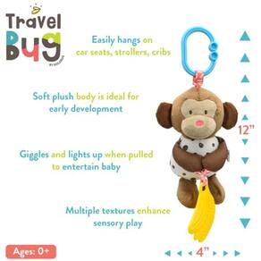 Divirta-se em qualquer lugar com a Boneca de Atividades da Travel Bug. Esses brinquedos de atividade para bebês se prendem facilmente a cadeirinhas de carro, carrinhos de bebê e muito mais para estimulação e emoção enquanto você viaja. Desligue-os para bebês e bebês brincarem em qualquer lugar. Com alta brincadeira sensorial quando puxadas, as bonecas Travel Bug riem e se iluminam mantendo a atenção dos bebês e desenvolvendo ainda mais seus sentidos. Estes brinquedos de atividade suaves e pendurados são perfeitos para manter bebês e bebês animados e atentos em qualquer lugar e são obrigatórios!