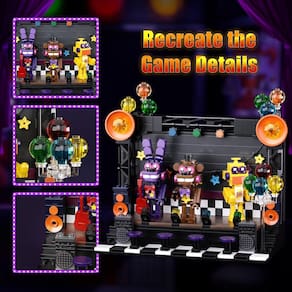 Conjunto de blocos de palco FNAF: o conjunto de blocos FNAF refere-se à forma de um palco de pizzaria em um famoso jogo de terror, com todos os detalhes exibidos nos blocos de construção. Consiste em 467 blocos de construção, embalados em uma delicada caixa independente. Presente criativo: este brinquedo de jogo de cinco noites pode ser utilizado como presente de aniversário, presente de dia das crianças, presente de Natal, presente de Halloween e todos os outros presentes de férias inesquecíveis. É um presente bonito e ideal Especificações: Material: plástico ABS Idade: acima de 6 anos Tamanho: como mostrado Instruções: instruções em papel A embalagem inclui: Conjunto de blocos de palco FNAF 467 embalagem requintada de caixa de presente Observação: As cores podem variar ligeiramente devido a diferentes exibições de tela. Medição manual, considere pequenos erros de tamanho. - ?Cena de arquitetura de palco de monstro de cinco noites?Este bloco de construção Five Nights Security Room recria um palco icônico de Five Nights, composto por 467 blocos, dando aos jogadores a sensação de construir em um ambiente de jogo real. Venha e complete rapidamente! - ?Reproduz detalhes do jogo?Este conjunto de blocos de montar reproduz o palco principal do jogo, e há vários pequenos detalhes no palco, como alto-falantes, balões e alto-falantes. Você pode colocar seus bonecos de ação favoritos para criar sua própria cena de jogo de terror! - ?Decoração para entusiastas de jogos?Configure os blocos de palco da pizzaria como uma exibição para sua casa, escritório, estante, mesa e qualquer lugar que você goste. Este conjunto FNAF será uma excelente adição à sua coleção! - ?Fácil de montar? Fornecemos instruções detalhadas de montagem de papel para que você possa construir este palco de monstro aterrorizante na ordem das etapas de instalação, o que tornará a construção mais fácil e clara. As crianças podem passar algumas horas se divertindo enquanto ficam longe de outros dispositivos eletrônicos. Se você tiver alguma dúvida, sinta-se à vontade para entrar em contato conosco a qualquer momento. - ?Materiais seguros e confiáveis? Este brinquedo de construção com um palco é feito de material ABS, com bordas lisas, durabilidade, lavabilidade e compatibilidade com brinquedos clássicos de blocos de construção. Em conformidade com os padrões de segurança infantil e inofensivo para a saúde das crianças, use com confiança!