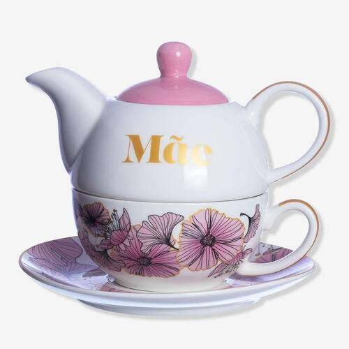 Depois de um dia agitado, vivendo aventuras e criando memórias incríveis com a sua mãe, você quer dar uma mãozinha para ela na hora relaxar A gente te ajuda Com esse bule 2 em 1 a hora do chá fica muito mais divertida O bule conta com 410ml para sua mãe fazer o chá preferido dela, e a caneca possui 260ml para ela aproveitar o sabor de cada gole O produto é importado, feito em cerâmica, possui detalhes incríveis que vão fazer vocês se apaixonarem ainda mais pela hora do chá Se você quer adicionar um pouco de diversão e criatividade no seu chá, a gente te ajuda Com esse Bule 2 em 1, a hora do chá fica muito mais completa O bule conta com 410ml e a caneca possui 260ml de capacidade, com uma alça ergonômica e um pires para você apoiar sua caneca Não importa se é n café da tarde ou da manhã, esse kit te acompanha em todas as suas aventurasEspecificação:Bule:Altura: 13cm Comprimento: 7,5cm Largura: 15,5cm Capacidade: 410ml Material: Cerâmica Caneca:Altura: 5cm Largura: 12,5cm Comprimento: 10cm Capacidade: 260ml Material: Cerâmica Cuidados e recomendações de uso:Lavar com água, esponja macia e detergente neutro.Não vai ao micro-ondas, nem a lava-louças.Não utilizar químicos e abrasivos.Choques ou quedas podem trincar ou quebrar o produto, pois trata-se de um produto de cerâmica.