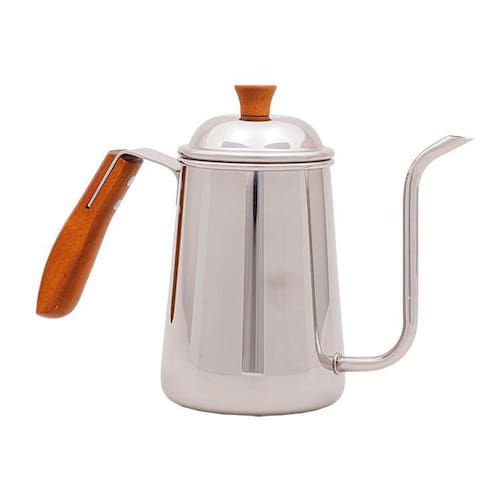 Bule bico fino inox brilhante com cabo de madeira 700ml Uma ótima opção profissional para preparo de chocolates, cappuccinos e leites.Sua base com fundo arredondado facilita a vaporização.Esta é uma peça certa para cafeteria e baristas.Com cabo de madeira, além de útil é um charme. - conteúdo1 bule - materialAço inoxidávelMadeira - medidas25cm - comprimento do cabo ao bico .9,5cm - diâmetro do fundo.8 cm - diâmetro da boca.16cm - altura - marcaMimo style Imagens meramente ilustrativas.