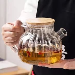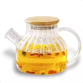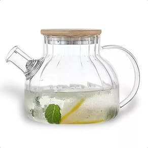 Bule de Chá em Vidro Borossilicato com Tampa de Bambu – Resistente ao calor e ao frio, pode ir ao fogo ou ao freezer. Possui filtro removível para preparar chás diretamente na jarra. Tampa hermética em bambu que garante praticidade e segurança no uso.