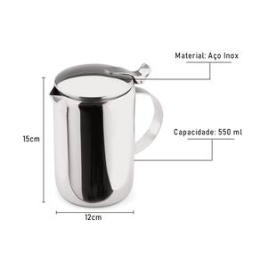 O bule/jarra em aço inox de 550ml é a opção perfeita para servir chá ou café com elegância. Com dimensões de 15x12x12 cm, seu tamanho compacto é ideal para uso diário ou pequenas reuniões.