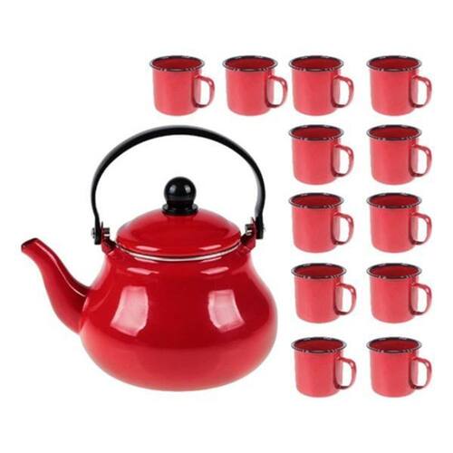 O kit bule vermelho 1,5l + 12 canecas esmaltada 150ml vermelha é o conjunto perfeito para quem busca praticidade e estilo na hora de servir bebidas quentes. Com capacidade de 1,5 litro, o bule esmaltado é ideal para uso em cafés, restaurantes, pousadas, hotéis e também em casa. O bule é fabricado em aço esmaltado, o que proporciona uma barreira contra a proliferação de bactérias e facilita a limpeza. Além disso, ele é esmaltado por dentro e por fora, garantindo durabilidade e resistência. Sua alça possui revestimento plástico, o que evita o aquecimento e proporciona maior segurança durante o manuseio. Com um design moderno e elegante, o bule vermelho adiciona charme e sofisticação à sua cozinha. Suas dimensões de 21 cm de largura por 14 cm de altura o tornam compacto e fácil de armazenar. As 12 canecas esmaltadas que acompanham o kit possuem capacidade de 150ml e são perfeitas para servir bebidas quentes, como chás, chocolates quentes e café. Além de funcionais, elas também são ótimas para incrementar a decoração da sua cozinha, seja ela de qual estilo for. A marca do kit, conhecida por sua qualidade e durabilidade, é referência no mercado de utensílios para cozinha. Com anos de experiência, a marca busca sempre oferecer produtos inovadores e práticos, atendendo às necessidades e preferências dos consumidores. Com o kit bule vermelho 1,5l + 12 canecas esmaltada 150ml vermelha, você terá em mãos um conjunto versátil e funcional, perfeito para o dia a dia ou para ocasiões especiais. Aproveite a qualidade e o estilo desse kit e surpreenda seus convidados com bebidas quentes deliciosas e uma apresentação impecável. Perguntas frequentes: