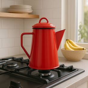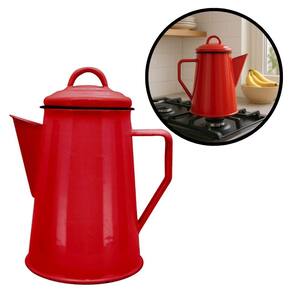 Com estrutura metálica esmaltada na vibrante cor vermelho clássico, o bule possui alça ergonômica, bico funcional para servir sem respingos, e um visual nostálgico que combina com cozinhas modernas ou tradicionais.